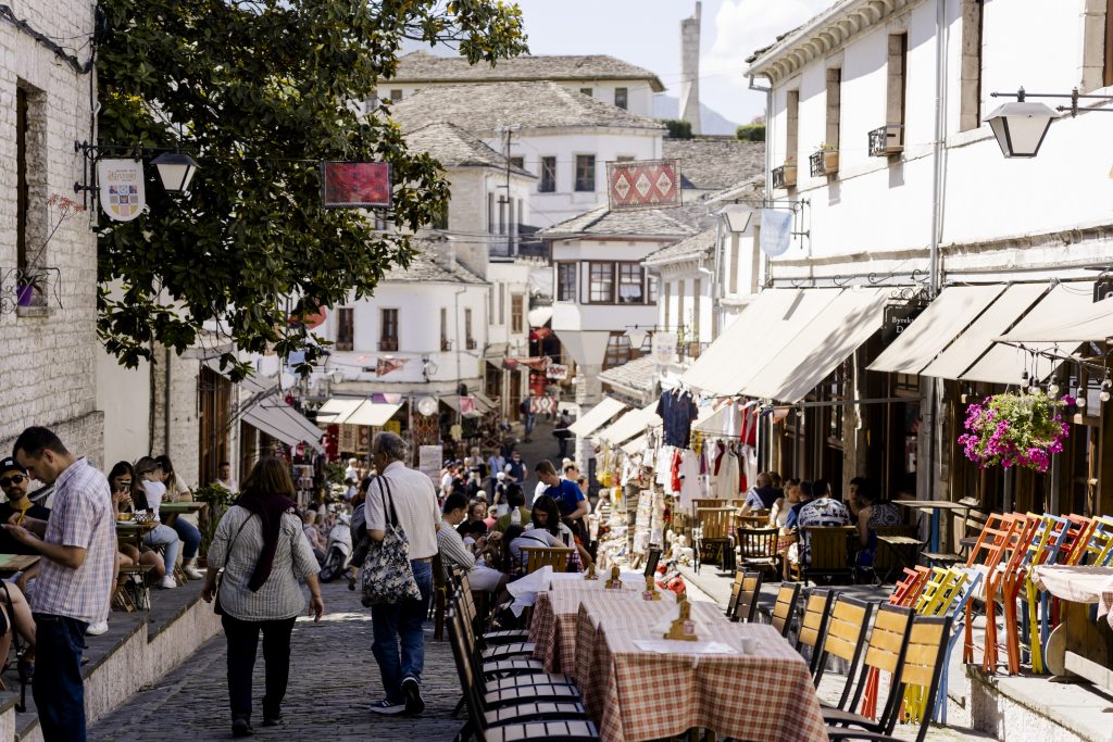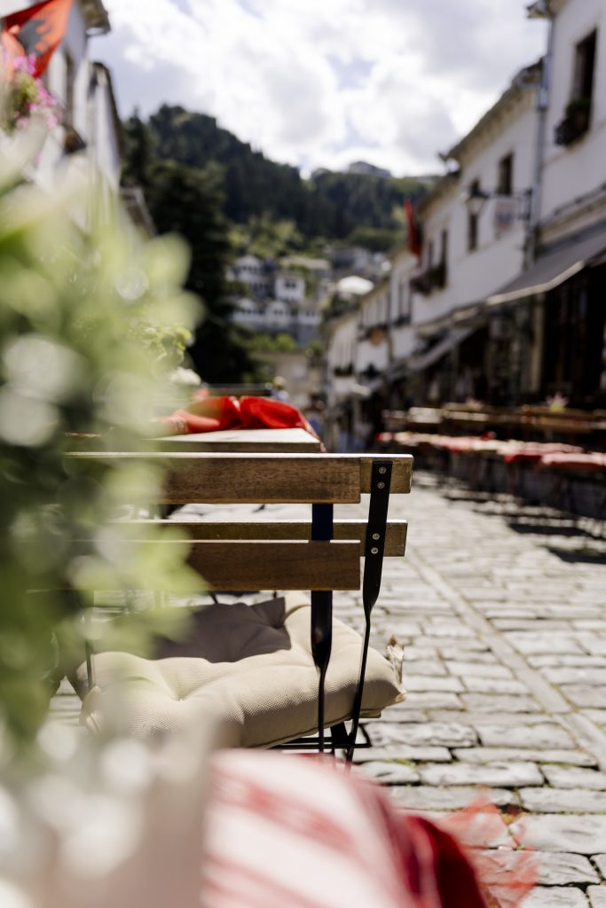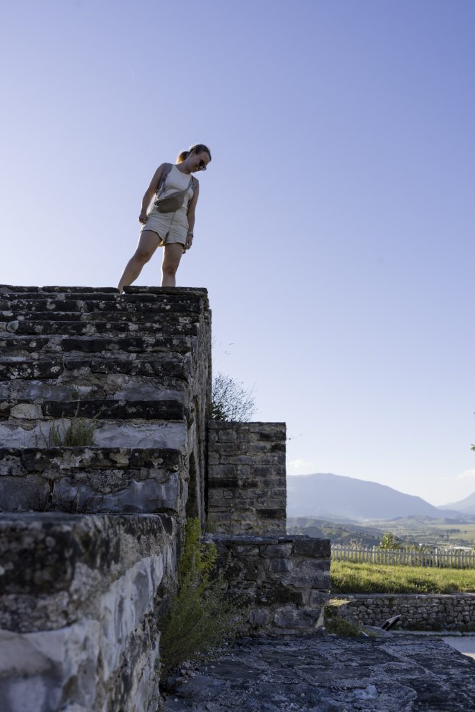 Gjirokastra hat uns sofort verzaubert – mit ihren steingepflasterten, engen Gassen, den typischen osmanischen Häusern und der majestätischen Burg, die über der Stadt thront. Besonders in den frühen Morgenstunden, wenn die Sonne noch tief steht, wirkt die Stadt wie aus einer anderen Zeit. Besonders imposant fanden wir die Steingedecken Hausdächer, was der Stadt von oben betrachtet einen spannenden Look verpasst. Bis wir jedoch an unserer Unterkunft ankamen, war das ein ordentlicher Kampf, denn: der Alte Teil ist unglaublich (!!) steil. Das hat unserem Mietwagen all seine Leistung abverlangt.