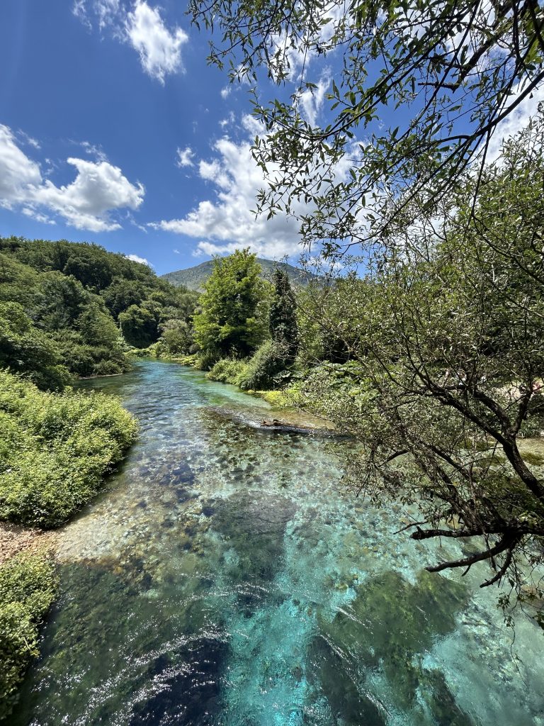 „Das Blaue Auge“ wird die Quelle genannt, die in ganz Albanien bekannt ist und zu der Touristenmassen jedes Jahr im Wahrsten Sinne strömen. Es handelt sich um eine unterirdische Karstquelle, aus dessen Innerem konstant Wasser (6 Kubikmeter/Sekunde) nach Oben gefördert wird. Spannend auf jeden fall mit anzusehen, auch wenn der Platz im Sommer sicher mehr als Badeort genutzt wird.